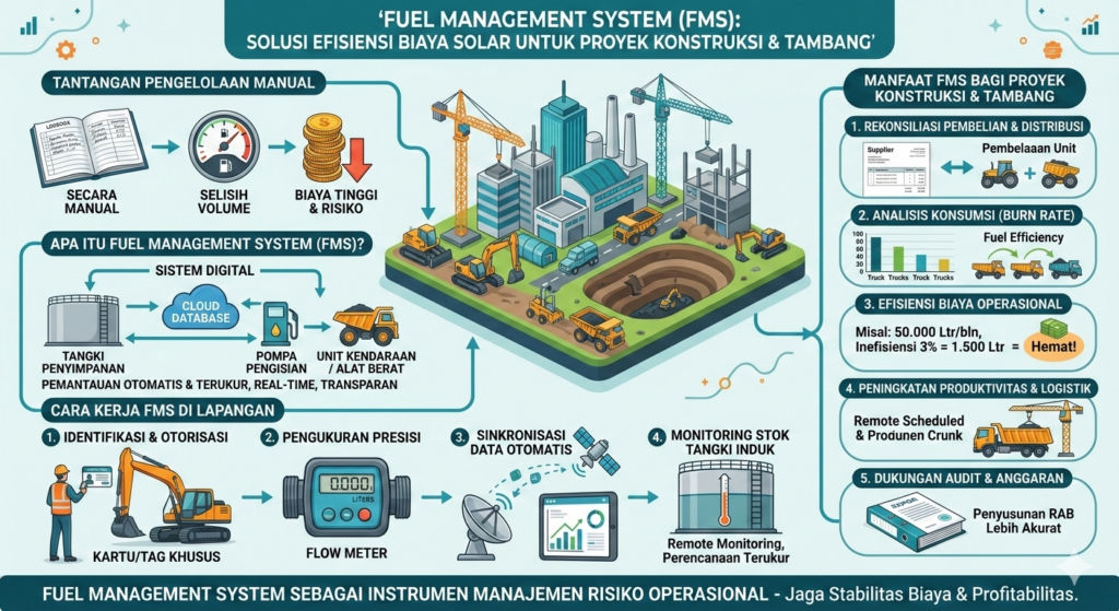 Situasi tekanan margin proyek dan dinamika harga energi, pengelolaan solar industri berbasis data menjadi bagian penting dari manajemen risiko operasional. Fuel Management System bukan sekadar perangkat tambahan.